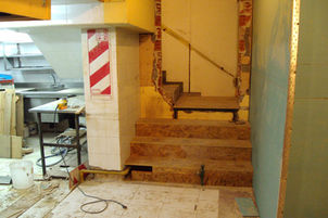 Se realizo una re funcionalización completa en dos galpones linderos de 650 m2 - Demolición de medianera y Trabajo en estructuras metálicas para la unificación de ambos predios. - Colocación de cúpula vidriada en estructura metálica sobre patio de comidas. 100 m2 - Construcción de nuevo entrepiso sobre salón en estructura de hormigón pretensado sobre perfilaría metálica de 85 m2. - Realización de baños para hombres mujeres y con discapacidad. 60 m2 .